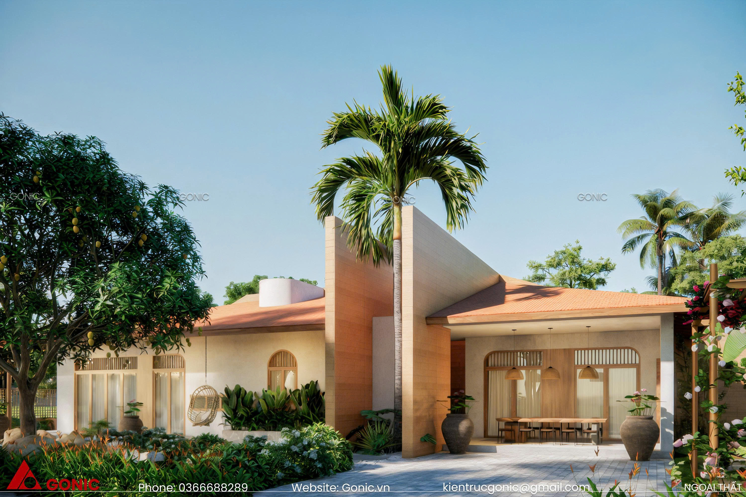 Mẫu biệt thự là sự pha trộn giữa nét truyền thống của văn hóa Việt Nam và vẻ đẹp sang trọng, ấm cúng của một không gian nghỉ dưỡng thực thụ. Biệt thự sân vườn 1 tầng là một trong những mẫu biệt thự được nhiều gia đình lựa chọn. Một phần là nó mang đến sự kết nối giữa không gian sân vườn và không gian bên trong của ngôi nhà. Phần còn lại là với thiết kế 1 tầng nên các không gian sẽ được sử dụng trên một mặt sàn giúp gia chủ dễ dàng di chuyển và dễ kết nối hơn giữa các thành viên trong gia đình.