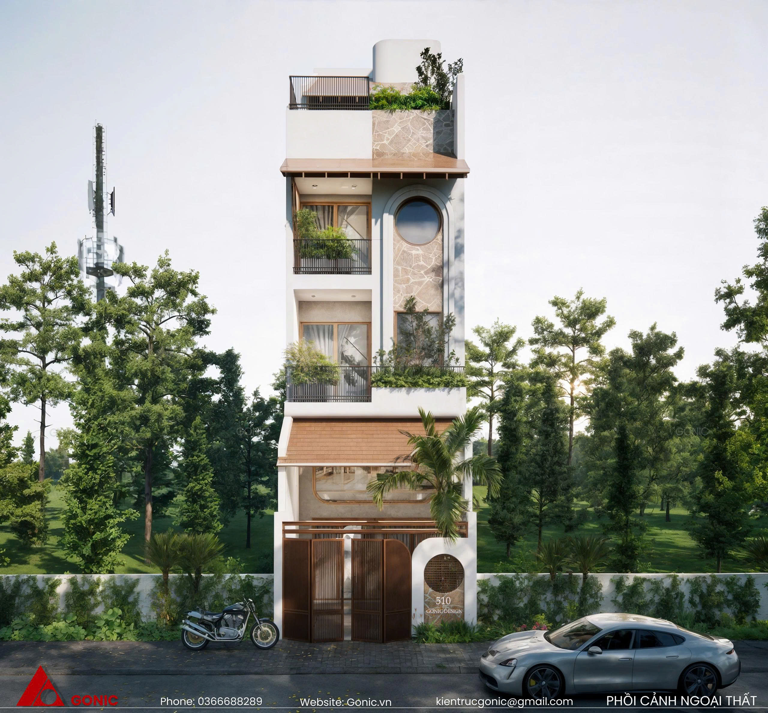 - Thiết kế cao tầng để tối ưu diện tích: vì diện tích nền hẹp nên để đáp ứng nhu cầu sinh hoạt cho gia đình 2 - 3 thế hệ, nhà phố bắt buộc phải phát triển theo chiều cao. Phổ biến nhất hiện nay là các mẫu nhà 2 tầng, 3 tầng hoặc 4 tầng 1 tum.