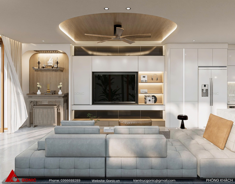 Phòng khách không chỉ là nơi tiếp đón, mà còn là nơi lưu giữ những kỷ niệm ấm áp, để mỗi khi trở về ai cũng cảm thấy thân thương như đang ôm trọn cả một thế giới bình yên.