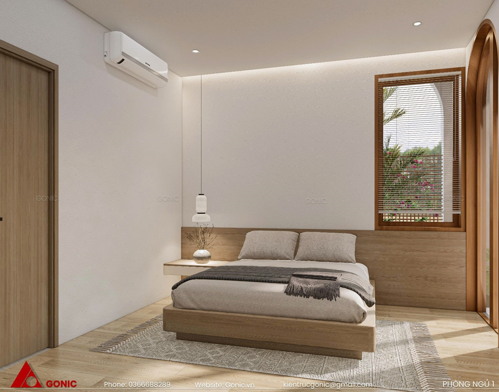 Sự kết hợp tinh tế giữa vẻ đẹp tối giản và cảm giác ấm áp, mang đến không gian nghỉ ngơi lý tưởng cho gia chủ.